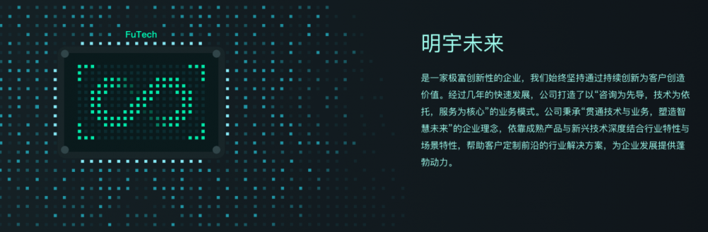 明宇未来是国内智汇移动化领域的领袖型企业。智代表人工智能AI、汇代表大数据、移动化代表业务向移动端迁移。最早从事智汇移动化研究,是国内智汇移动化事业发展的重要推动者和领导者,是国内运营商智汇移动化规则的制订者。首创MBA概念(M、移动化;B、大数据;A、人工智能),为智汇移动化行业规范化和标准化带来革命性的改变。