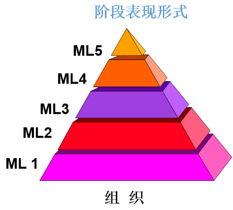 阶段式表示法提供了一条从CMMI成熟度级别1级到CMMI成熟度级别5级的改进之路。这条道路要求达成各成熟度级别中的过程域的目标。为了支持那些使用阶段式表示法的组织,过程域按照成熟度级别来分组,用以指明达成各成熟度级别需要实施的过程域。例如,成熟度级别2级包含了一系列的过程域,组织可以使用这些过程域来指导它的过程改进,直到组织达成所有这些过程域中的所有目标。一旦达成CMMI成熟度级别2级,组织就将关注点转移到成熟度级别3级的过程域,依此类推。适用于每个过程域的通用目标也已预设完成。通用目标2适用于成熟度级别2级,通用目标3适用于成熟度级别3级到5级。