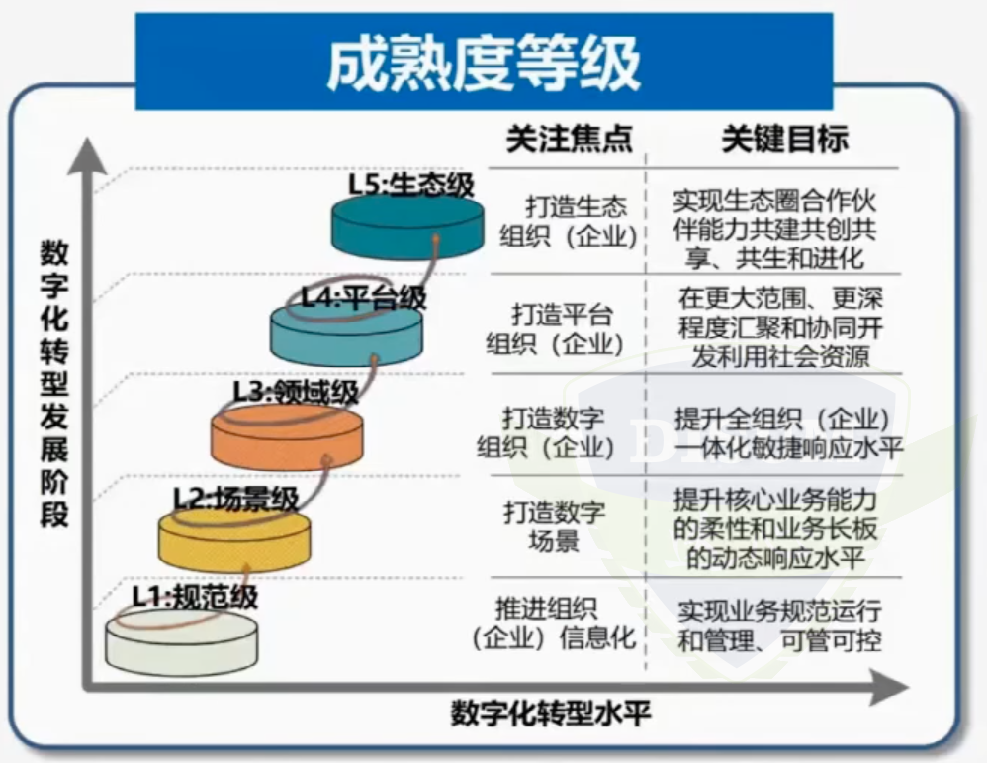 一、数字化转型成熟度分了5个等级,1级最低,5级最高