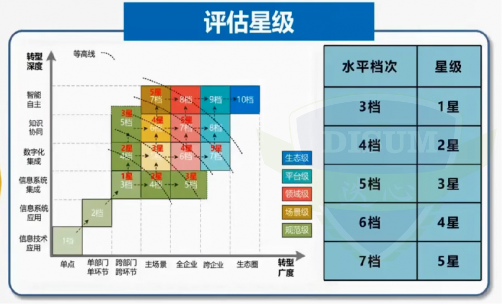二、数字化转型成熟度分了5个星级,1级最低,5级最高