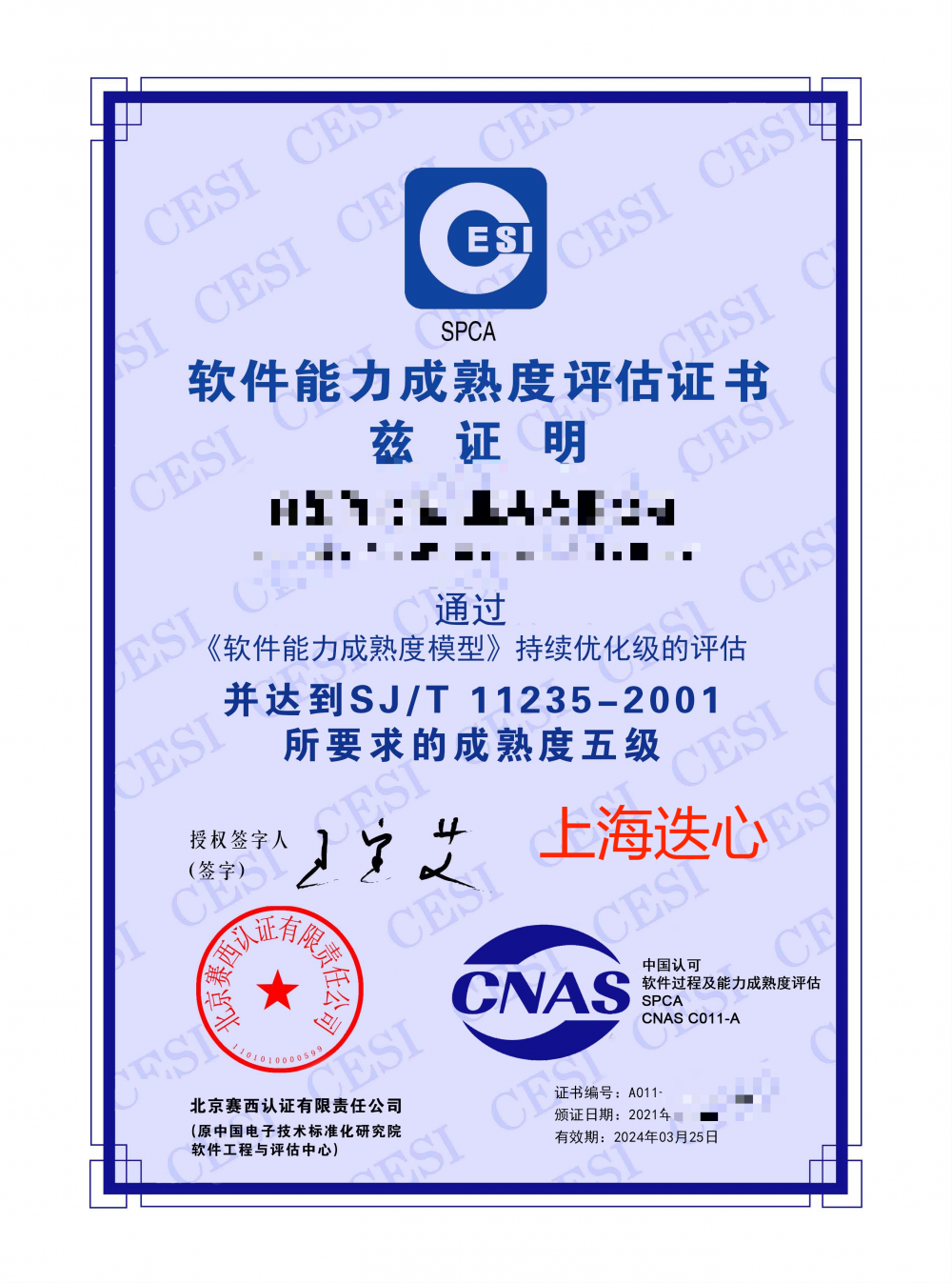 SPCA软件能力成熟度评估证书