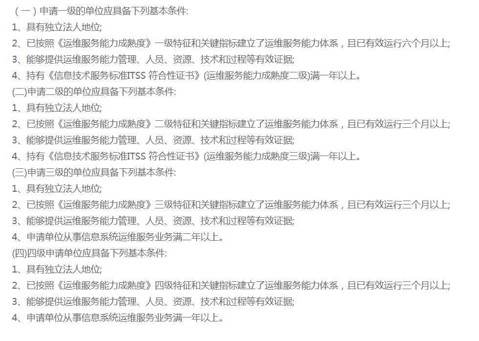 申请ITSS认证的条件包括: