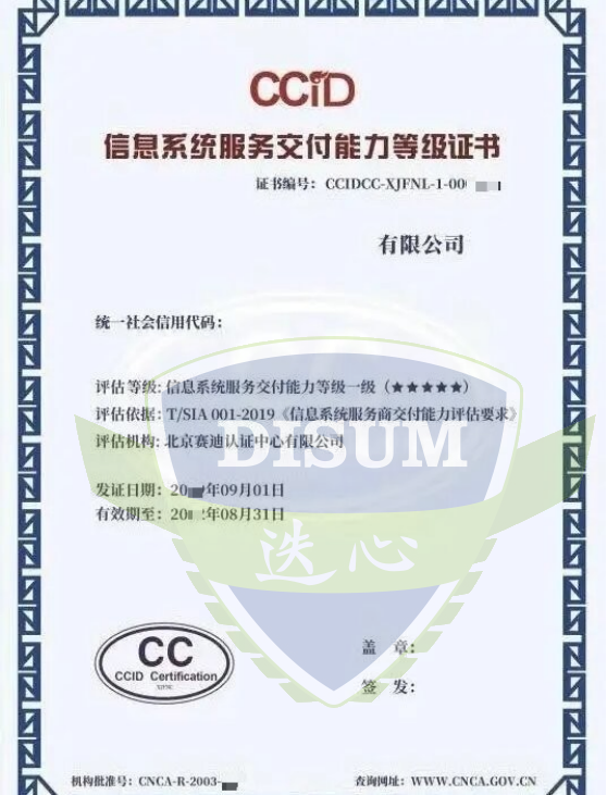 CCID4级3级2级1级信息系统服务交付能力等级证书